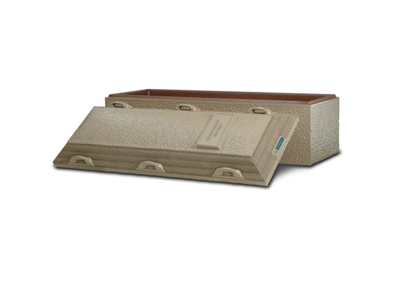 • Single-reinforced burial vault• Durable concrete exterior with a plastic-reinforced cover and base